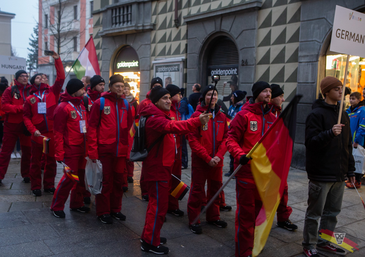 Schön war der Besuch der Schirmherrin der WDL2019 – Deborah Compagnoni – eine der besten Skisportler*innen Italiens und Namensgeberin der Piste, auf der die Ski-Alpin Wettkämpfe stattfinden werden. Guido Zanecchia, Präsident des italienischen Dachverbandes für Gehörlosensport hieß die Gäste aus den mehr als 30 Ländern ganz herzlich willkommen, wünschte allen faire und gute Wettkämpfe und einen schönen Aufenthalt in Italien. Der Bürgermeister der Stadt Sondrio eröffnete die Veranstaltung in LIS (Lengua de signos italiana), die Sängerin Silvia Mezzanotte wurde beim Singen der Nationalhymne von Studenten der italienischen Gebärdensprache begleitet.