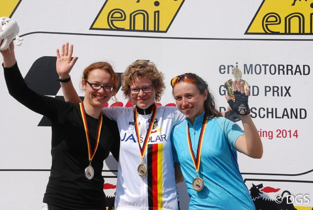 Sieger der Damen beim Straßenrennen und Zeitfahren: Luise Jungnickel, Bianca Metz, Saskia Fritsch (v.l.)