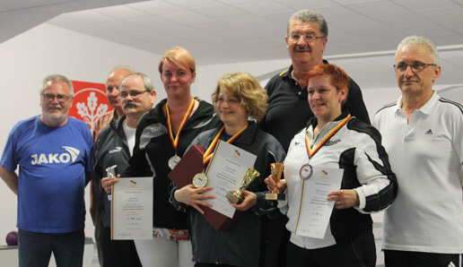 Nach den 2-tägigen Wettkämpfen mit großen Schweißbächen hatte der DGS Classic-Kegeln Verbandsfachwart Bernhard Müller und seinem Technischer Leiter Josef Rothmeier bei der Siegerehrung eine Überraschung für alle Teilnehmern und –innen bereitet mit dem schönen Vorschlag von Josef Rothmeier, dass bei den Damen, bei Senioren und bei Herren die Partnern/innen für Paarkampf von einer neutralen Glücksfee ( Christine Michel ) ausgelost wurde mit dankbarer Hilfe von Thomas Weisner. Da waren viele davon begeistert und es war eine schöne Aktion und Spannung bei der Siegerehrung gewesen.