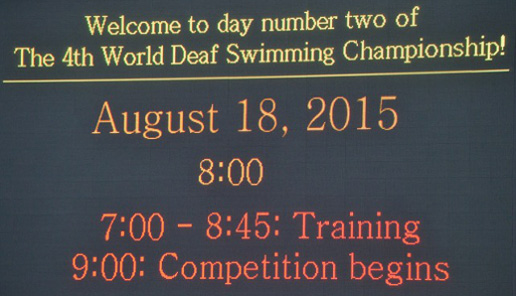 Der Höhepunkt für Alina steht morgen am dritten Wettkampftag auf dem Programm. Über 50 m Brust erreichte sie 2013 bei den Deaflympics als 15-jährige Platz vier sowie im Vorjahr bei den Europameisterschaften Platz fünf, jeweils mit nur geringem Abstand auf Bronze. Angesichts des sehr starken Teilnehmerfeldes in San Antonio ist es sicher etwas gewagt, auf einen Medaillengewinn zu spekulieren. Schon eine Platzierung unter den ersten sechs wäre eine sehr gute Leistung. Alina Mühlenjost ist mit siebzehn noch sehr jung und wird ihren Leistungszenit erst in den kommenden Jahren erreichen.