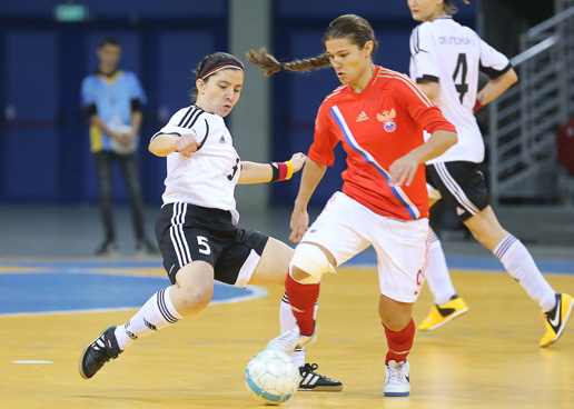 Fatma bei der Futsal-WM in Bangkok (Copyright Bonchuk Andonov): Fatma Alkan entschlossen im Zweikampf